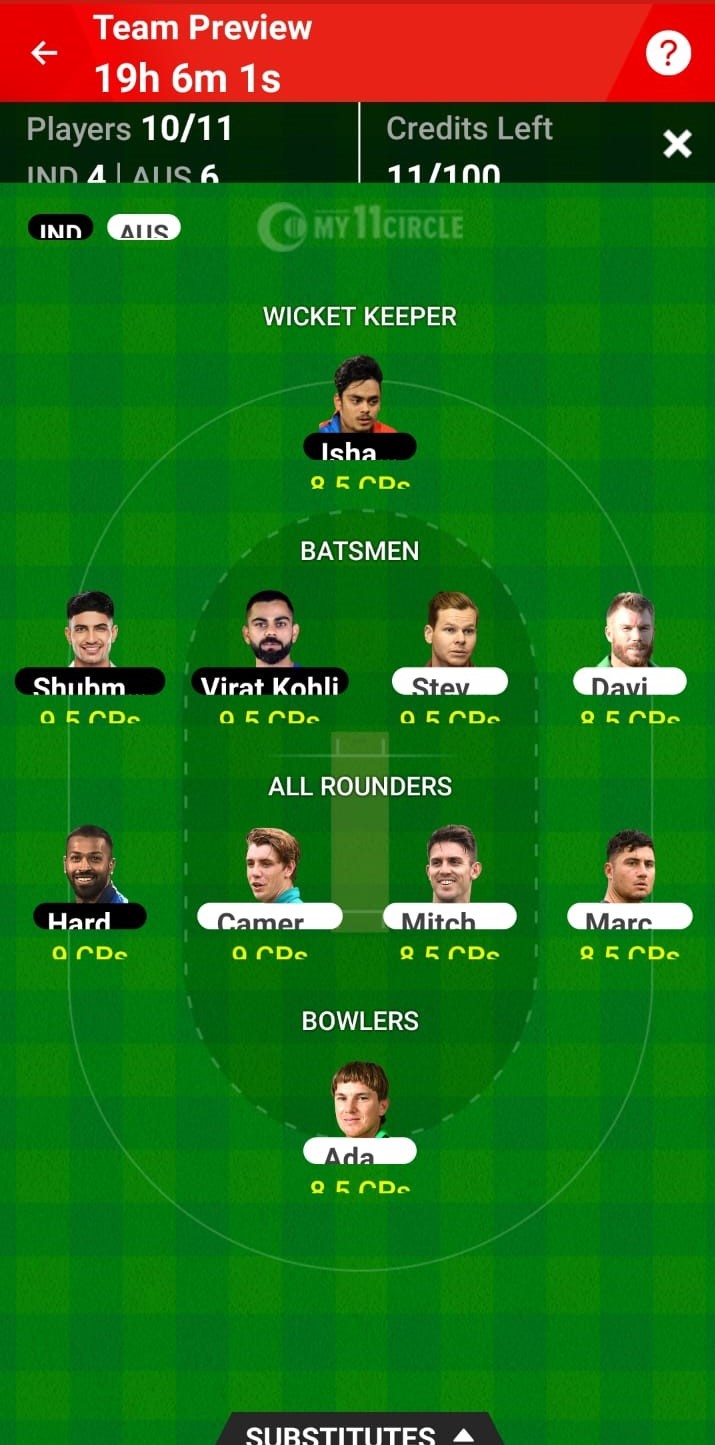 India Vs Australia | Dream11 Team Prediction